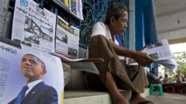 အေမရိကန္သမၼတ ဘရပ္အိုဘားမားဟာ ျမန္မာႏိုင္ငံကို ဒီရက္ပိုင္းအတြင္းမွာပဲ ေရာက္ရွိလာေတာ့မွာျဖစ္ပါတယ္။ အခုလိုမ်ိဳး အေမရိကန္ျပည္ေထာင္စုရဲ့ ထိပ္တန္းေခါင္းေဆာင္သမၼတတဦးရဲ့ ျမန္မာႏိုင္ငံကို ေရာက္ရွိလာမယ့္ သမိုင္းဝင္ခရီးစဥ္နဲ႔ ပတ္သက္ၿပီးေတာ့ ျမန္မာႏိုင္ငံသတင္းမီဒီယာေတြမွာ လည္း က်ယ္က်ယ္ျပန္႔ျပန္႔ ေဖာ္ျပေနပါတယ္။ ဒါေပမယ့္ ပုဂိဳလပိုင္ သတင္းဂ်ာနယ္ေတြမွာပဲ ေဝေဝဆာဆာေဖာ္ျပေနၿပီးေတာ့ အစိုးရပိုင္ သတင္းမွာေတာ့ သိပ္ၿပီး က်ယ္က်ယ္ျပန္႔ျပန္႔ ေျပာဆိုတာမရွိဘူးလို႔ ျမန္မာႏိုင္ငံ သတင္းစာဆရာမ်ားအသင္း ဥကၠဌ ေမာင္ဝံသက ဗီြအိုေအျမန္မာပိုင္းက ေျပာပါတယ္။